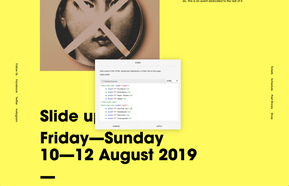 Vertical Navigation$10$10https://schema.org/InStockusdRyan DejaegherRyan DejaegherEasy vertical navigation for SquarespaceAdd to cartAvailable on October 14, 2020 at 7:00 PMAdd to wishlist New wishlistShare on XShare on Facebook Copy linkCopy product URL